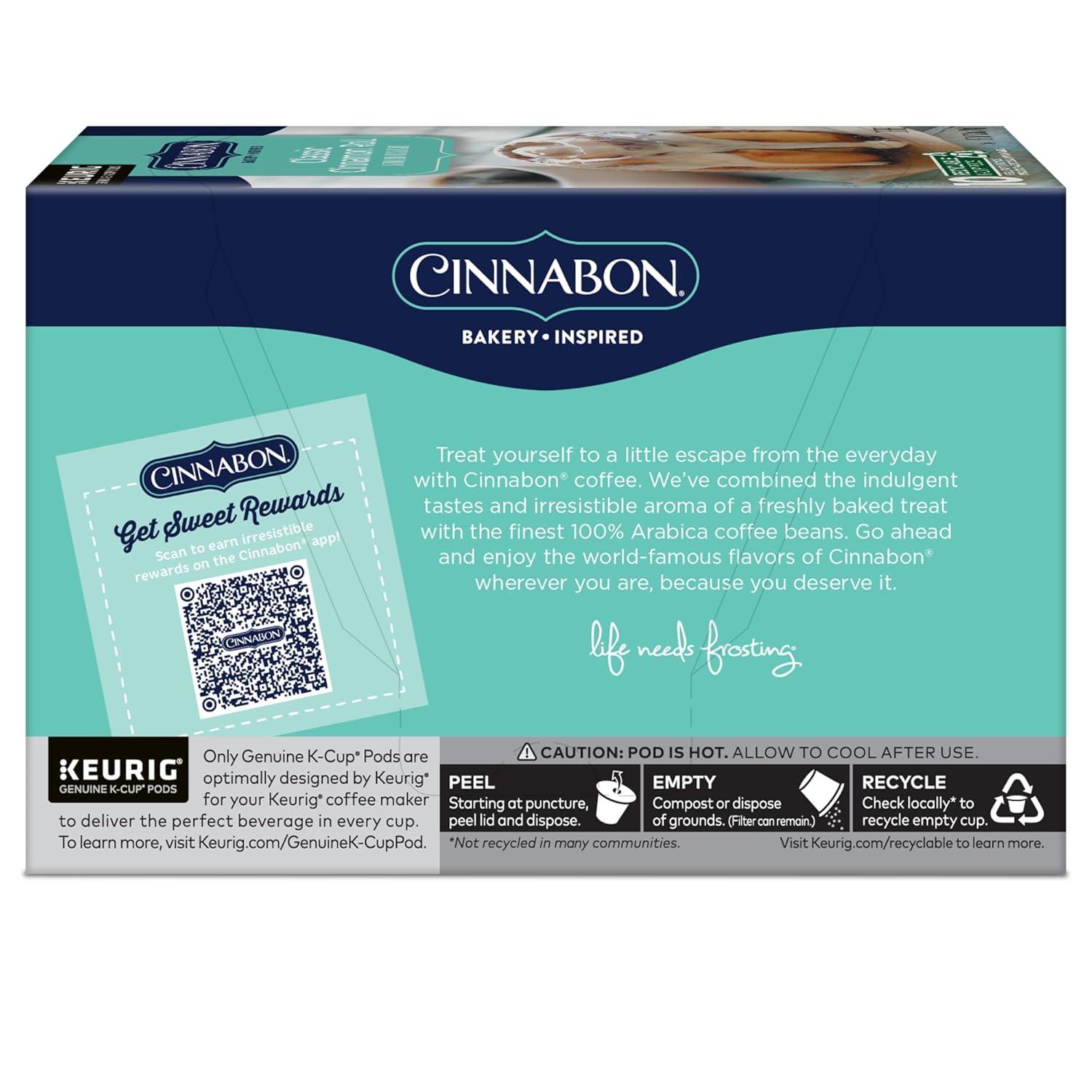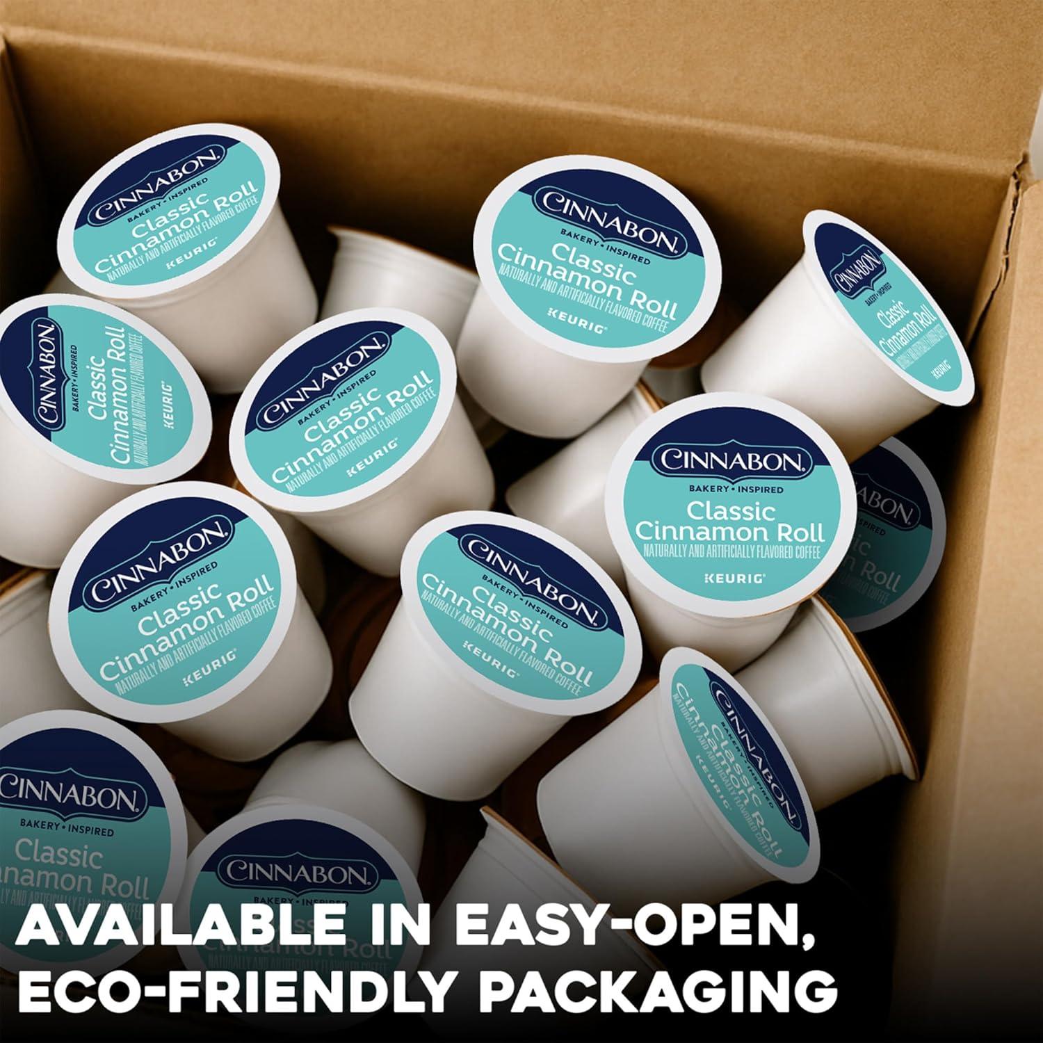 Cinnabon coffee has flavor that’ll have you flocking back for more. In every drop you can taste the superior quality of Arabica coffee beans, which gives our coffee a remarkably balanced taste. We've combined the indulgent taste and irresistible aroma of Cinnabon cinnamon rolls with the finest 100% Arabica coffee beans into a cup of delicious perfection. Go ahead and enjoy the extraordinary flavors of Cinnabon's world famous cinnamon rolls in the comfort of your own home, because you deserve it. We start with a smooth, light-roast brew and swirl in the decadent flavors of Cinnabon cinnamon, brown sugar, and, of course, our legendary frosting. Take a sip and delight in the taste of our world famous cinnamon rolls, hot out of the oven. Cinnabon Classic Cinnamon Roll is a cup of delicious perfection. Compatible with Keurig K-Cup pod single-serve coffee makers. Introducing Recyclable* K-Cup Pods: Simple. Delicious. And now Recyclable. Enjoy the same great-tasting coffee you know and love, and when you’re done just peel, empty and recycle. *Check locally, not recycled in all communities. Packaging may vary.