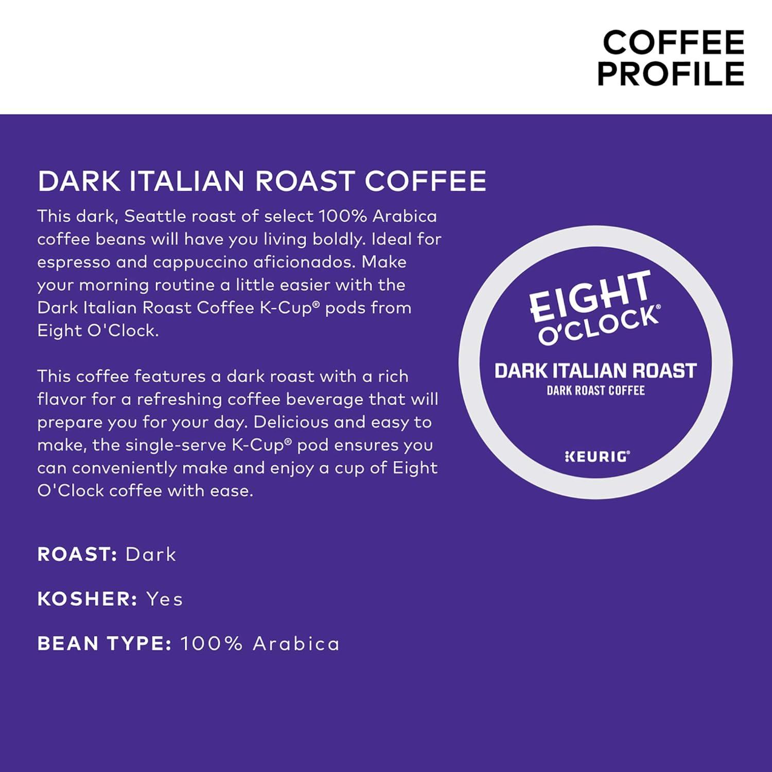 Eight O'Clock Coffee Hazelnut Keurig Single-Serve K-Cup Pods, Medium Roast Coffee, 96 Count(Dark Italian Roast)