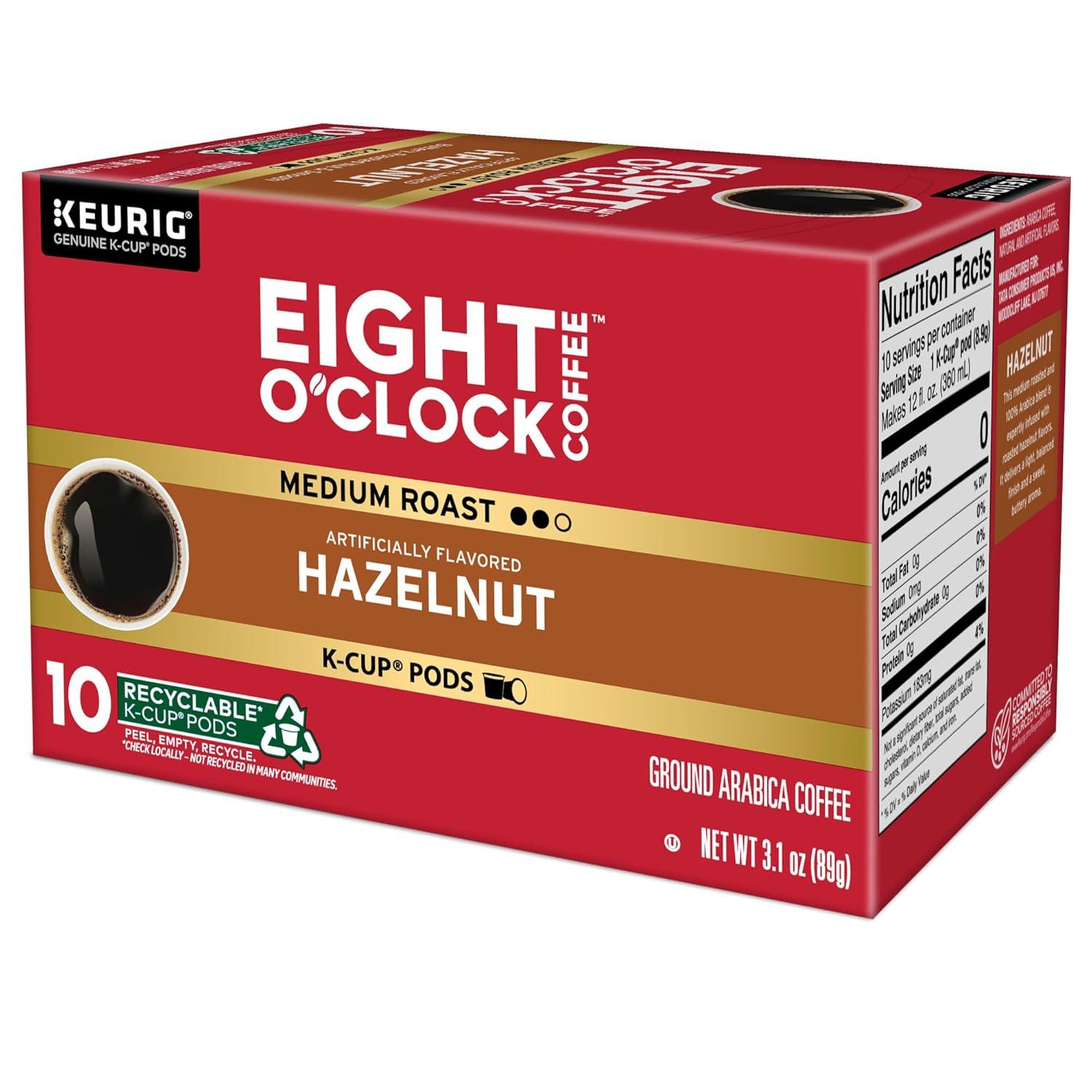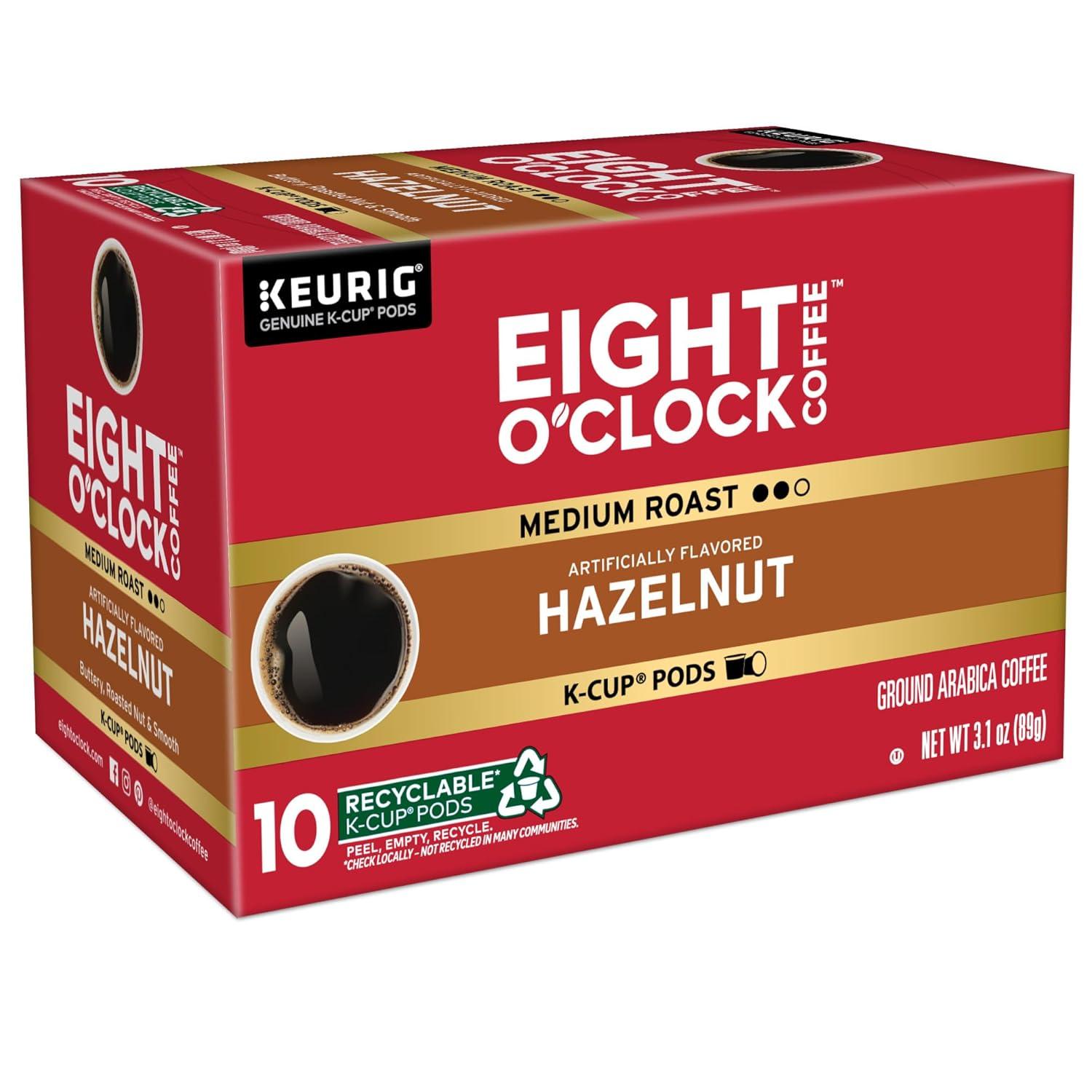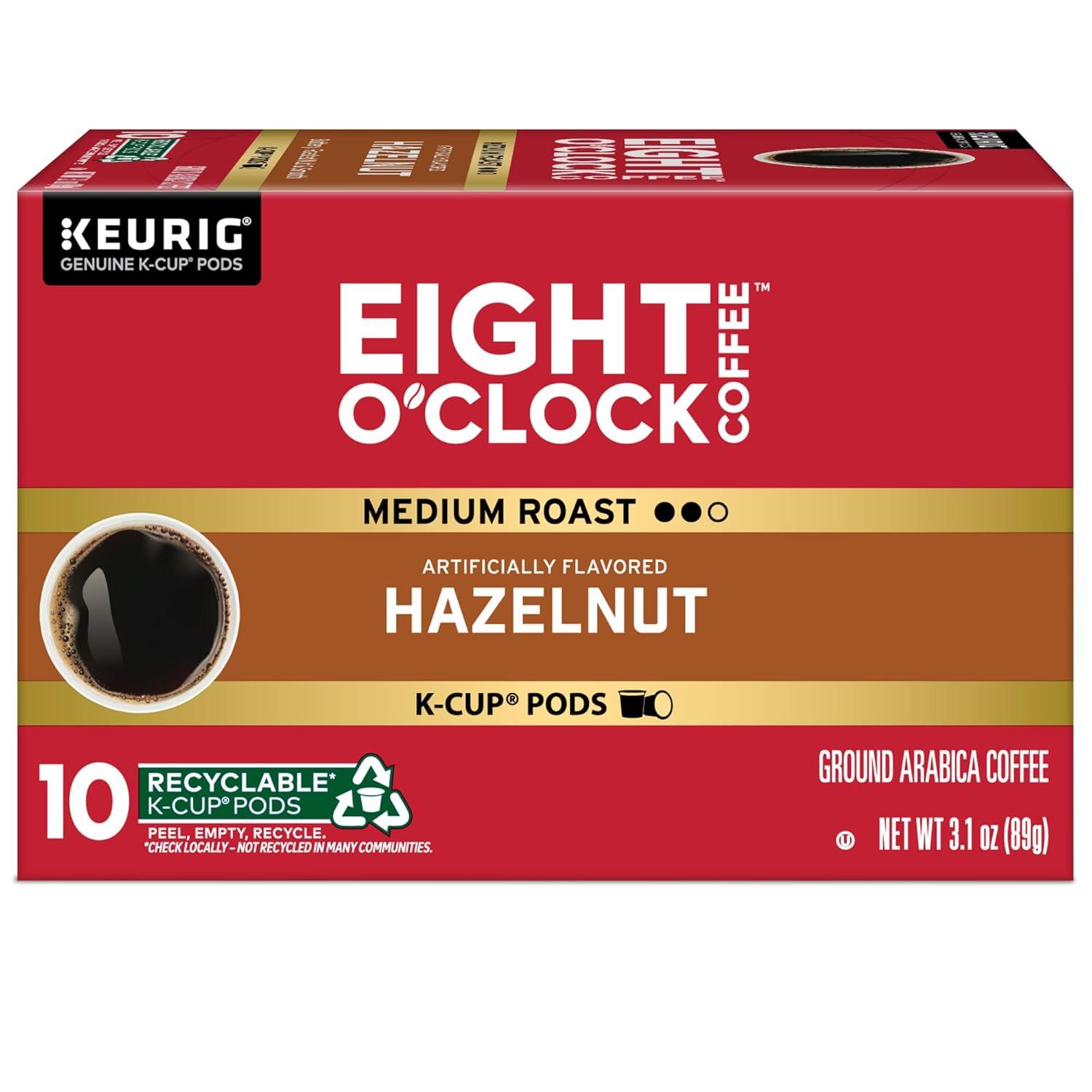 Looking for a premium flavorful blended coffee to your daily routine? Well, Eight O'Clock Coffee Hazelnut blend is perfect for you! Supremely rich hazelnut flavor infused into a distinctive blend of 100% Arabica coffee beans creates a truly unique and exciting taste. This medium roast flavored coffee is a mild brew, with a satisfying flavor you’ll truly go “nuts” for. Orthodox Union Kosher. Compatible with any Keurig K-Cup pod single-serve coffee maker. Just pop one in and enjoy delicious, fresh-brewed coffee– with just the single touch of a button. This unique blend adds the perfect amount of flavor to every cup.