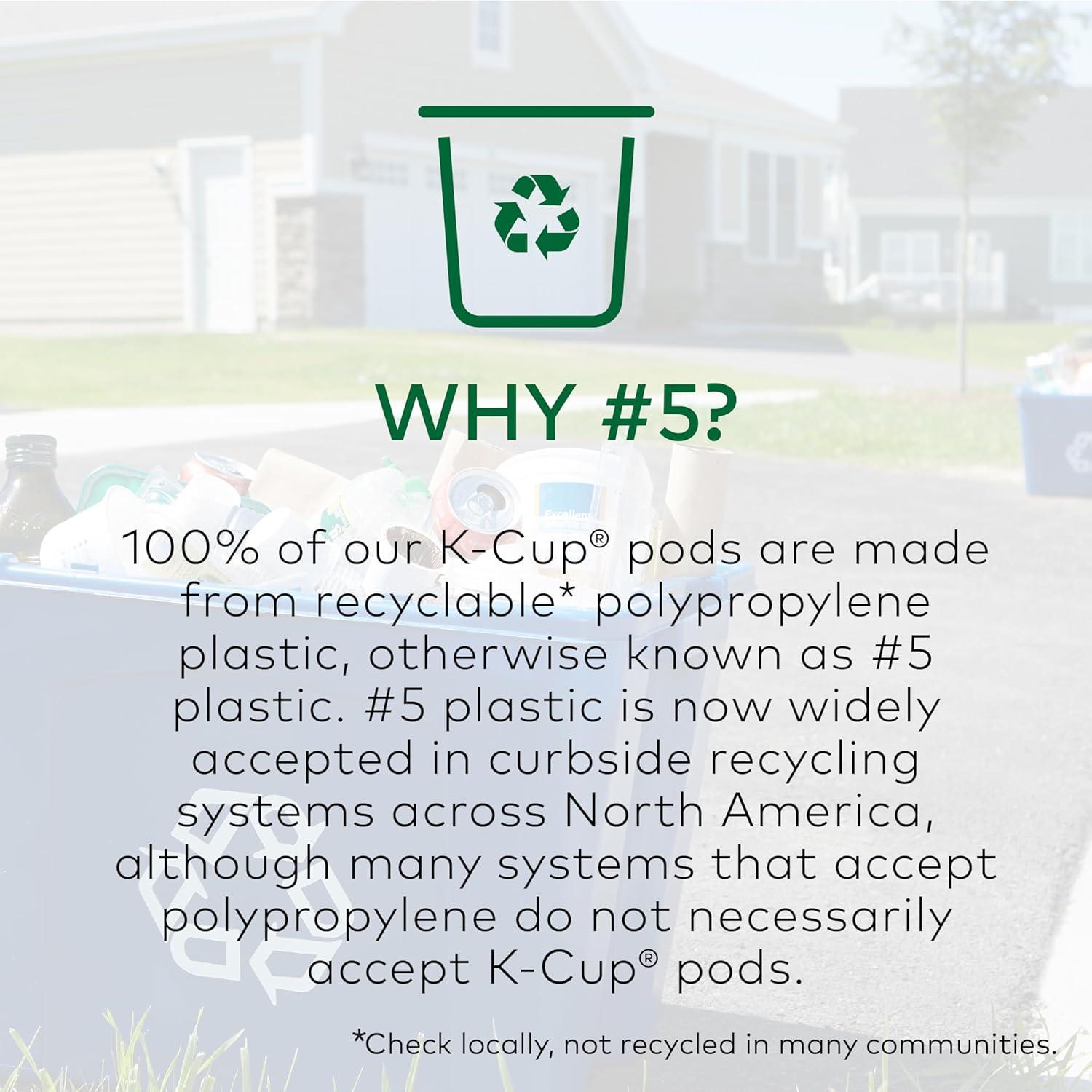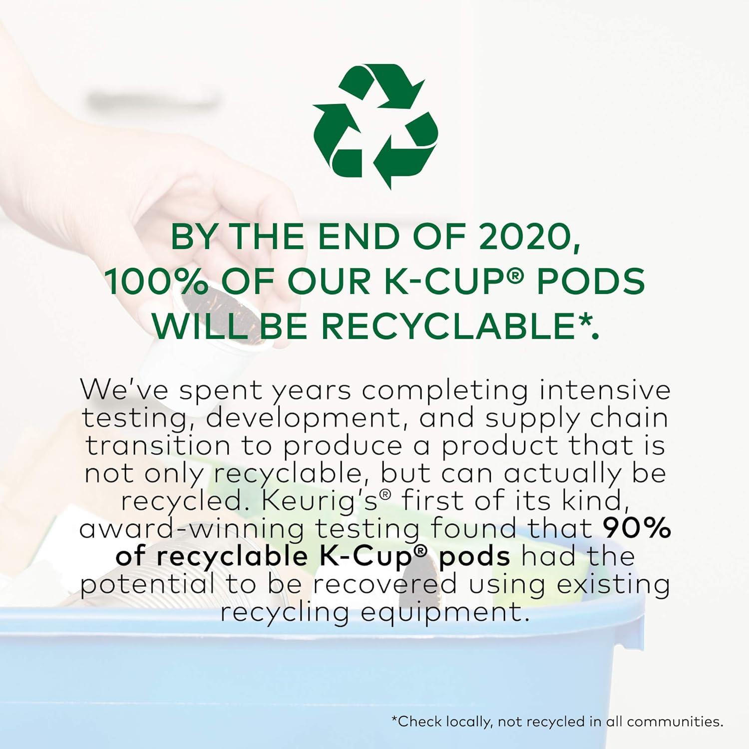RECYCLABLE K-CUP PODS: Simple. Delicious. And Recyclable. Enjoy the same great-tasting coffee you know and love, and when you’re done just peel, empty and recycle. Check locally, not recycled in all communities. Packaging may vary.