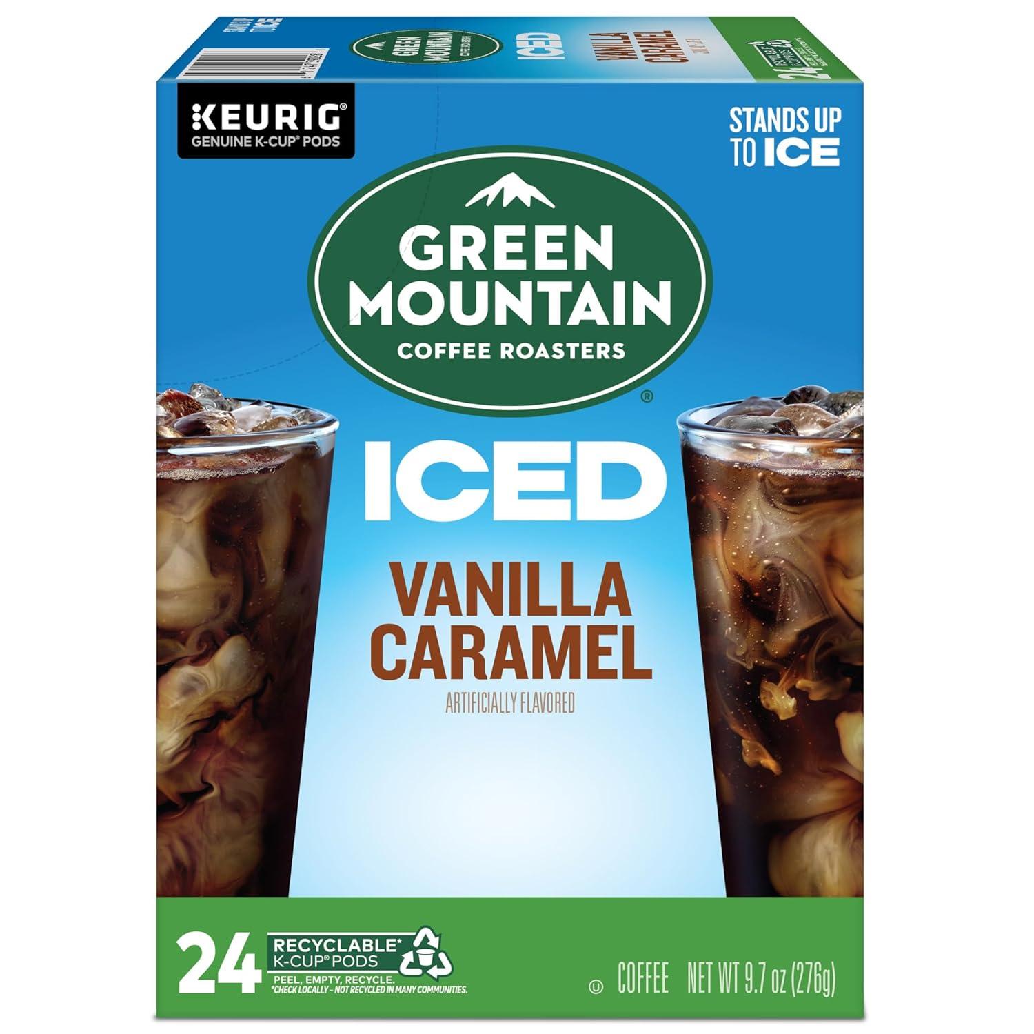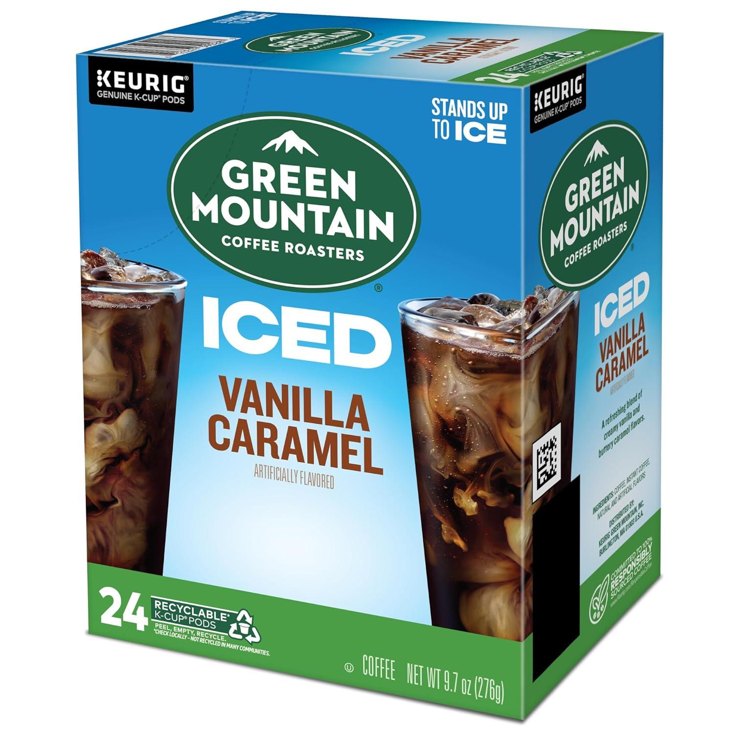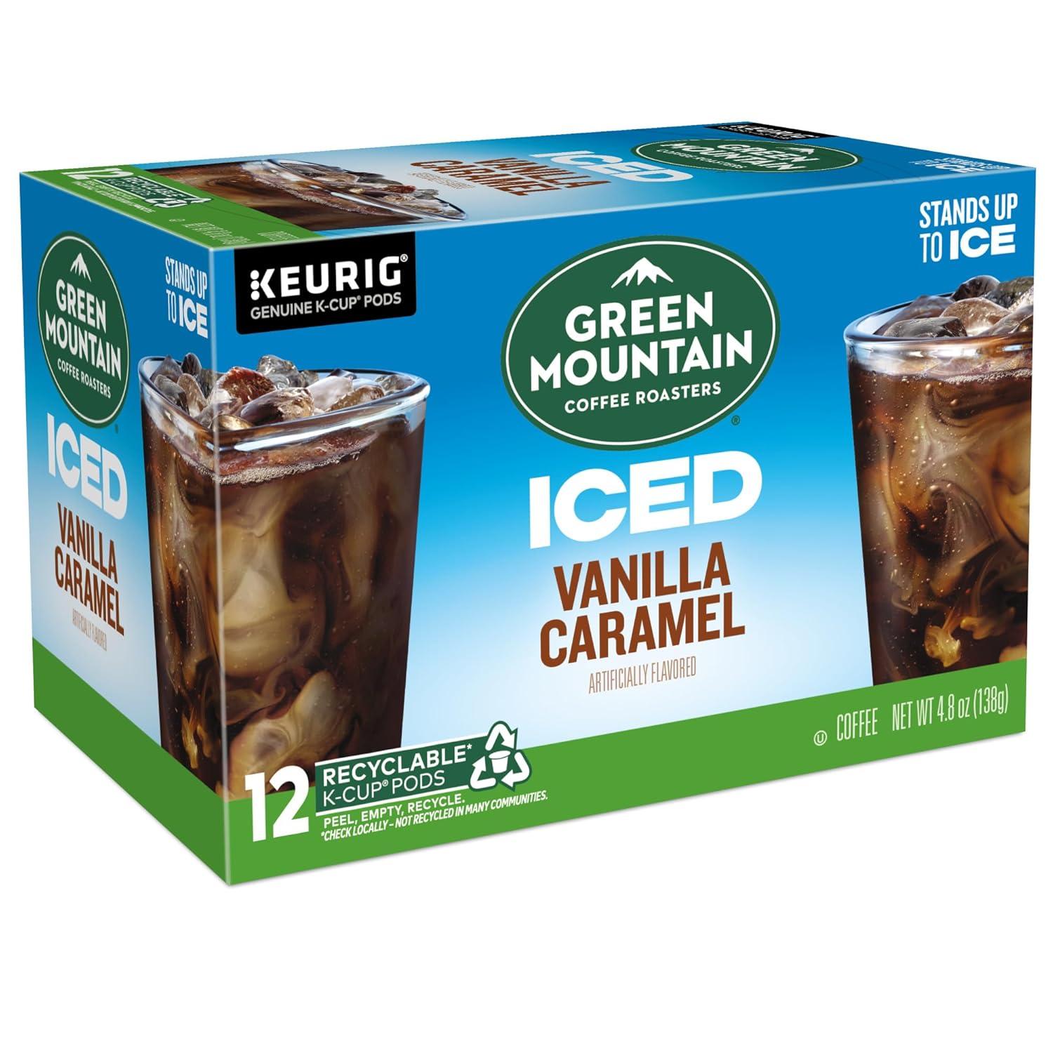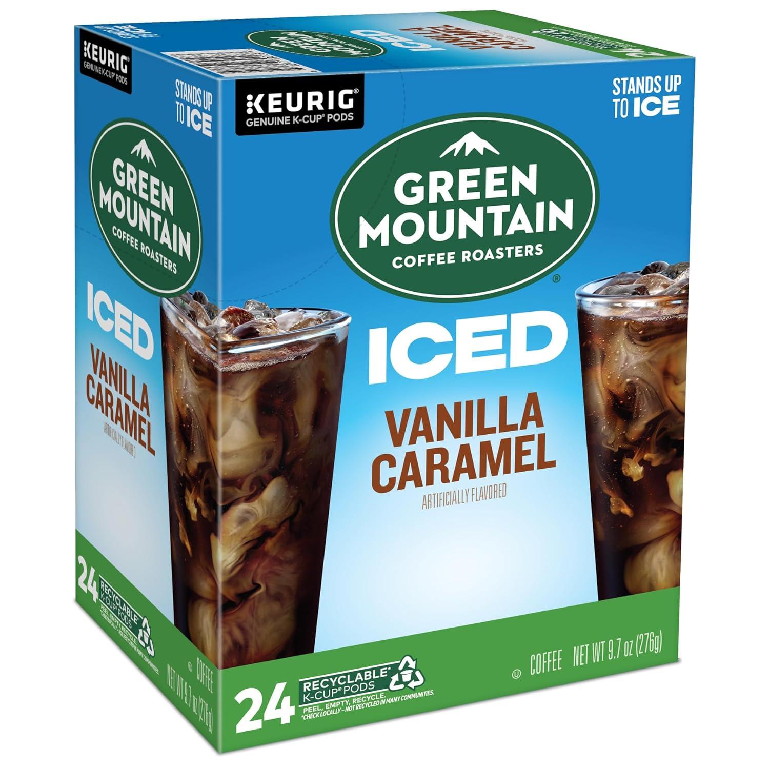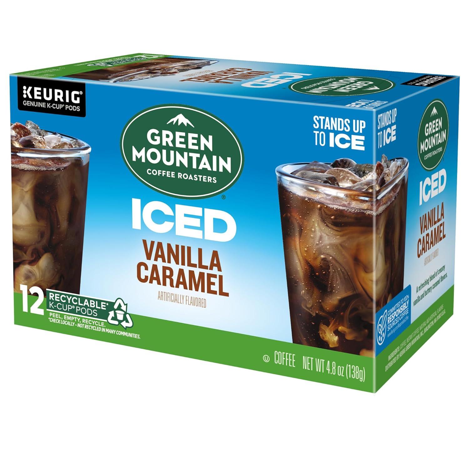 imageGreen Mountain Coffee Roasters ICED Classic Black Single Serve Keurig KCup Pods Medium Roast Iced Coffee 96 CountVanilla Caramel