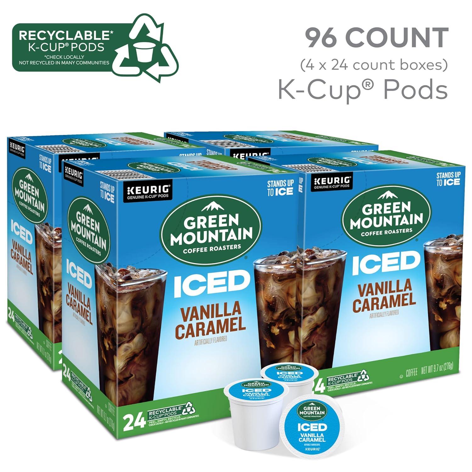 Green Mountain Coffee Roasters ICED Classic Black, Single Serve Keurig K-Cup Pods, Medium Roast Iced Coffee, 96 Count(Vanilla Caramel)