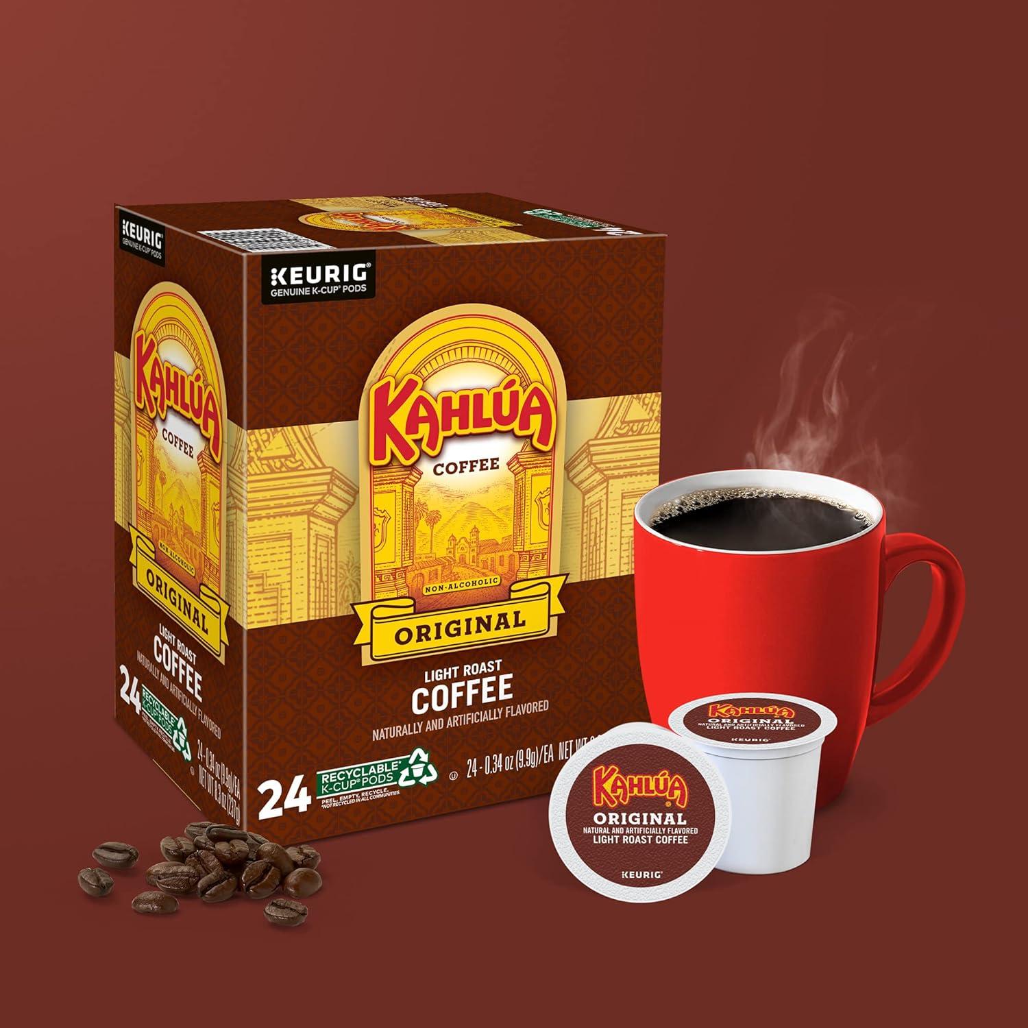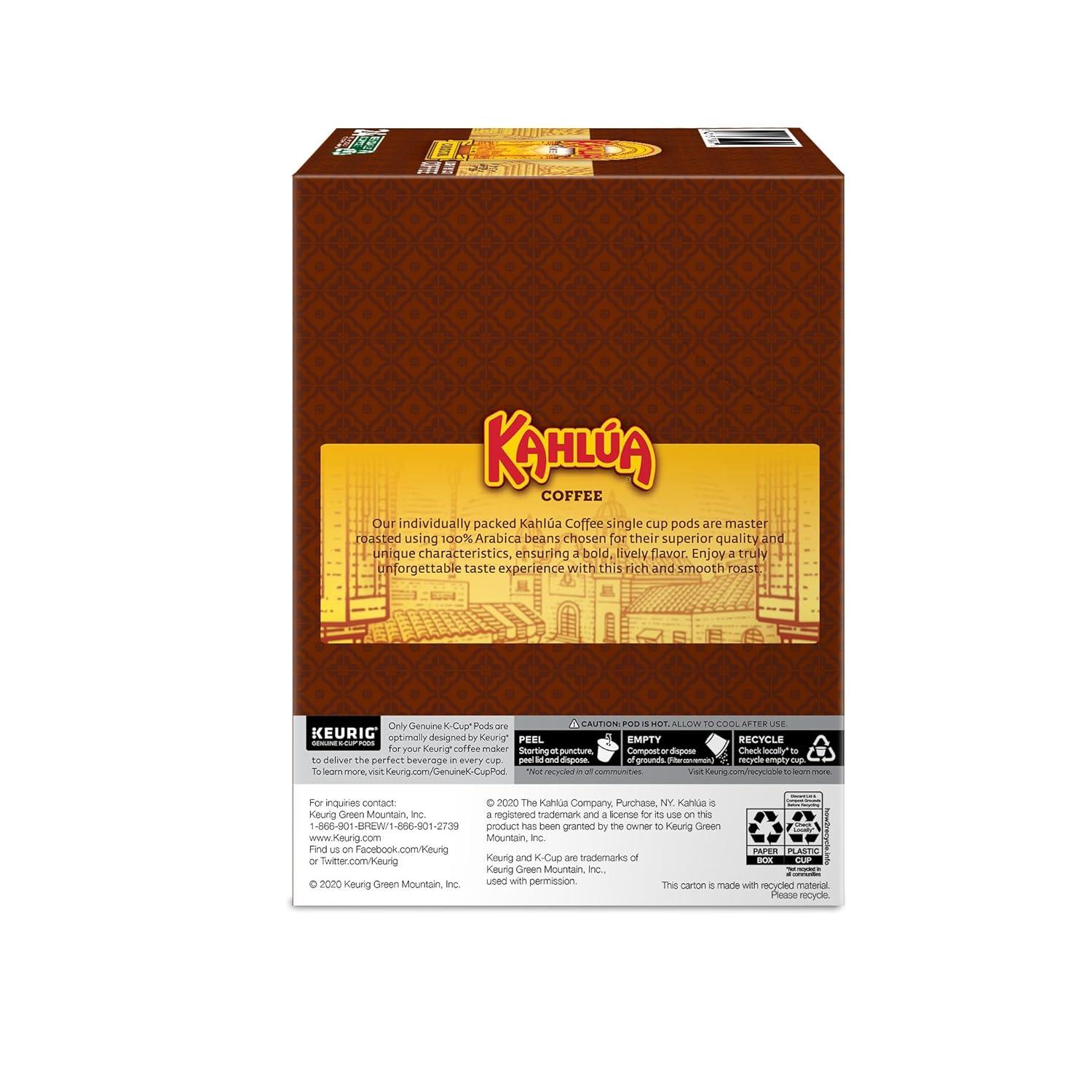 Our Kahlua Coffee Original K-Cup pods are master roasted using 100% Arabica beans chosen for their superior quality and unique characteristics, ensuring a rich, lively flavor. Kahlua Original combines the delicious notes of rum, vanilla and caramel, wrapped in roasted coffee flavor from hand-picked Arabica beans. Kahlua K-Cup® Pods capture all of the flavor of a traditional after meal aperitif in every single cup of coffee that they brew, allowing you a taste of the good life in your daily cup of joe. Compatible with Keurig K-Cup Pod Single Serve Coffee Makers. Just pop one in and enjoy delicious, fresh-brewed coffee in no time at all – with just the touch of a button.