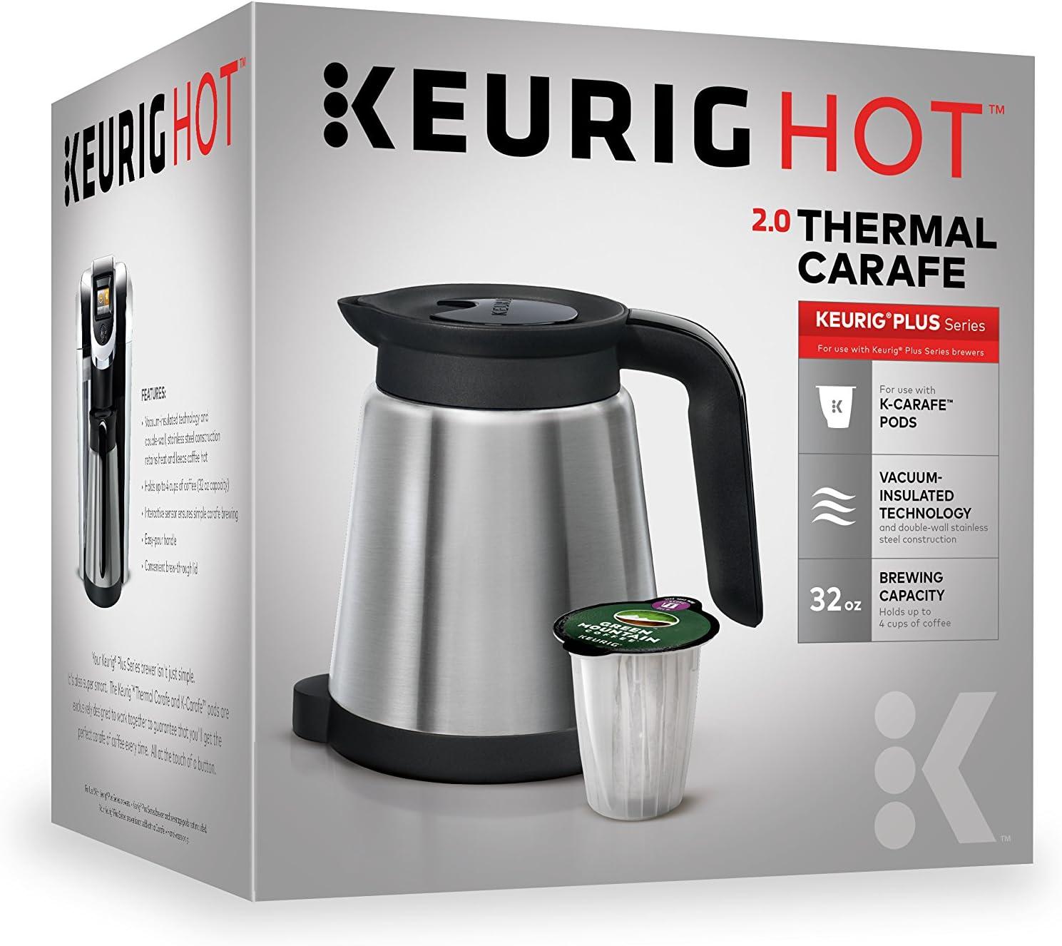 Designed exclusively for Keurig Plus Series coffee makers, the Keurig Carafe lets you brew a whole carafe of your favorite beverage without sacrificing the simplicity and convenience you’ve come to expect from Keurig. Made of double-walled plastic to keep beverages warm, the Keurig Carafe holds up to 4 cups of freshly-brewed coffee, making it perfect for entertaining guests, neighbors, or family. A sensor mechanism in the carafe interacts with your coffee maker, simplifying the brewing process. The convenient brew-through lid makes it easy to fill and the comfortable, ergonomic handle makes serving a snap. The Keurig Carafe is made of BPA-free plastic, with materials that meet the highest standards of product quality and safety.