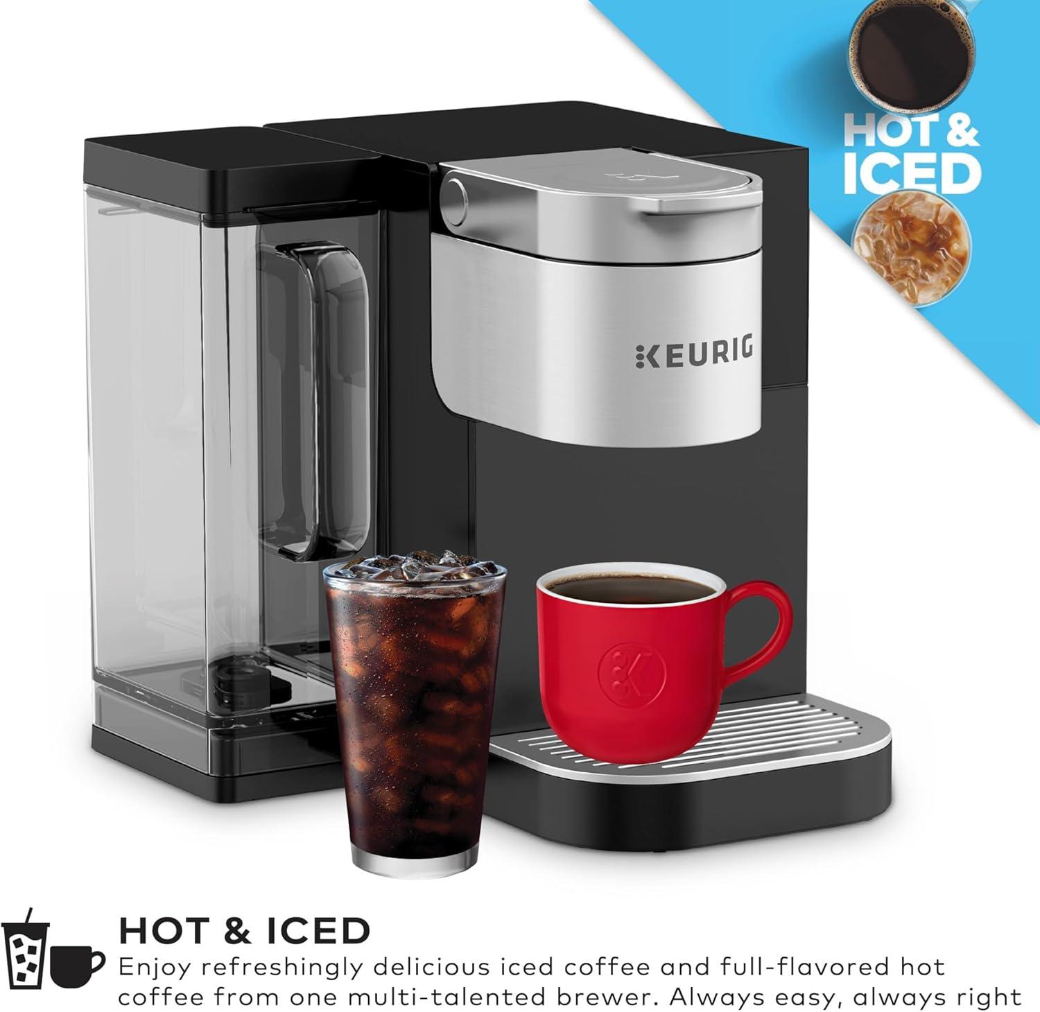 Delivers freshly brewed coffee, tea, and hot cocoa in about a minute