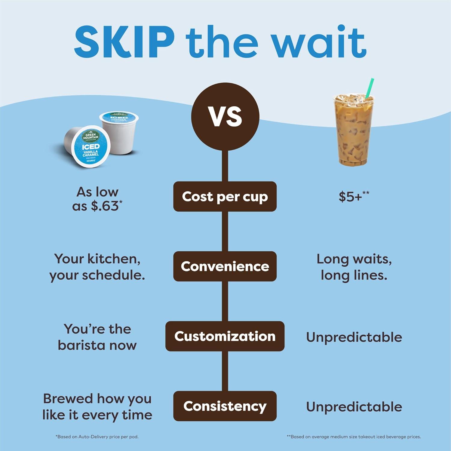 The first at-home coffee maker to make iced coffee as cold as the coffee shop*: the Keurig K-Brew+Chill. Enjoy full-flavored, perfectly chilled iced beverages in minutes, as well as delicious hot coffee, using ANY of your favorite K-Cup pods. The K-Brew+Chill with MultiStream Technology saturates the grounds evenly to extract full flavor and aroma in every cup, hot or cold. It features QuickChill Technology, our latest brewing innovation that flash-chills your coffee after brewing so it dispenses at a cool temperature for minimal ice melt and robust, rich flavor in 3 minutes or less. The Strong Brew option allows you to make a more intense, bold-flavored cup for both hot and iced drinks. The K-Brew+Chill comes with an extra-large, removable 70oz water reservoir and brews in 6, 8, 10, and 12oz cup sizes, so you can enjoy many cups between refills. Finally, an at-home coffee maker that makes iced coffee as cold as the coffee shop, for the delicious flavor and cool refreshment that iced coffee lovers have been looking for.*Based on two consecutive 10oz brews. The K-Brew+Chill Brewer can only brew mesh or cupless style pods on the hot setting. The mesh or cupless pods and the My K-Cup Universal Reusable Filter will not work when brewing cold/iced beverages. The current My K-Cup Universal Reusable Filter does not work in the K-Brew+Chill. A new version, that can be used in the K-Brew+Chill, will be available in February 2025.