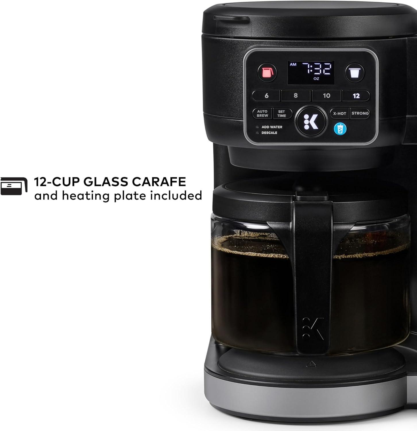 Meet the improved Keurig K-Duo Single Serve & Carafe Coffee Maker: the brewer made for every moment. It gives you the flexibility to brew delicious coffee in single cups using K-Cup pods OR in full carafes using your favorite grounds — so you can serve yourself or a crowd, all with one compact unit. It features an extra-large, 72oz removable water reservoir that feeds both sides of the brewer, which means easier brewing with fewer refills. Plus, a convenient new front-facing control panel with digital readout lets you quickly and easily select your brewing preferences. The single cup side brews all your favorite K-Cup pods in 6, 8, 10, or 12oz sizes. The K-Duo with MultiStream Technology saturates the grounds evenly to extract full flavor and aroma in every cup, hot or cold. It offers a variety of brewing options to craft your ideal cup, now including Brew Over Ice for making refreshing iced coffees and teas, as well as Strong Brew for brewing a bolder, more intense cup and the Extra Hot feature for an exceptionally steamy cup. The carafe side brews in 6, 8, 10, and 12-cup sizes, and with programmable Auto Brew you can set your preferred brew time up to 24 hours in advance. It features a newly designed glass carafe that minimizes dripping and a heating plate for keeping your coffee hot and delicious from the first cup to the last. Whether you’re enjoying a cup for yourself or hosting a crowd … looking for cool refreshment or cozy warmth … the Keurig K-Duo is the one brewer that’s made for every moment.