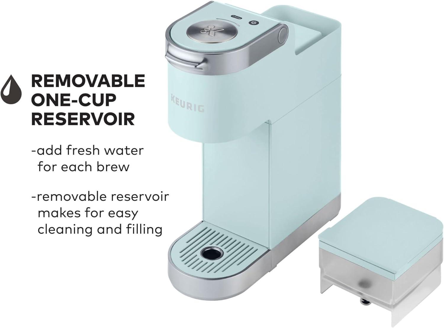 The Keurig K-Mini Plus single serve coffee maker in Evening Teal features a new sleek design, and at less than 5 inches wide is the perfect size for any space or occasion. The K-Mini Plus brewer is effortlessly simple to use – just add fresh water to the removable reservoir, pop in your favorite K-Cup pod, press the brew button and enjoy fresh brewed, delicious coffee in minutes. Choose from hundreds of delicious K-Cup pod varieties to enjoy 6-12oz of your favorite coffee, tea, cocoa, and iced beverages. And for those who like a bolder brew, select the Strong button to increase the strength and bold taste of your coffee. With a single cup removable reservoir, a pod storage unit to store 9 of your favorite K-Cup pods, and cord storage, the K-Mini Plus coffee maker is the portable brewer that makes anywhere perfect for great coffee. The K-Mini Plus coffee maker is available in a variety of matte-finish colors with silver detailing on the handle and drip tray. Based on consumer feedback, we have updated the K-Mini Plus Brewer. Customer reviews have been removed that relate to the previous version of the brewer.