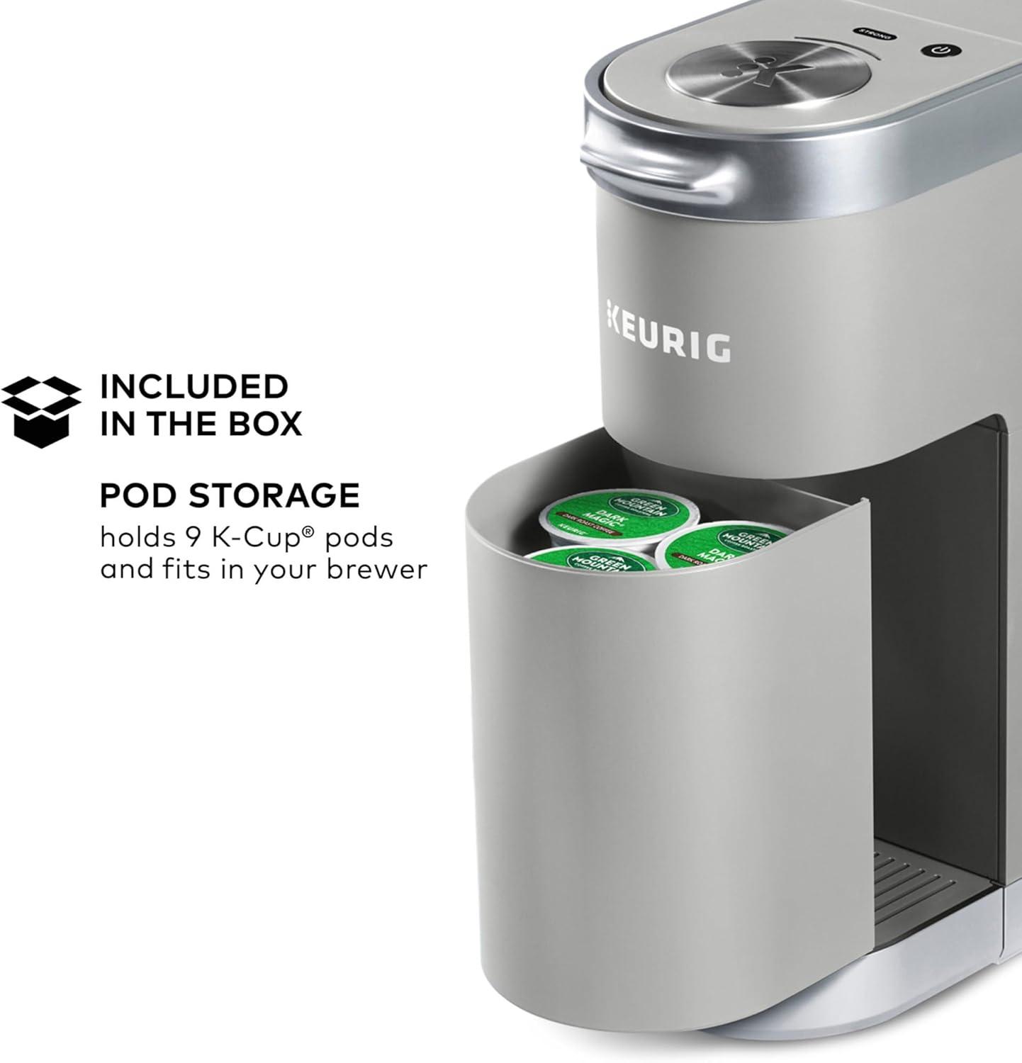 WHAT'S IN THE BOX: Keurig K-Mini Plus single serve coffee maker, pod storage unit that fits in your brewer and can hold up to 9 K-Cup pods.Filter type:Reusable