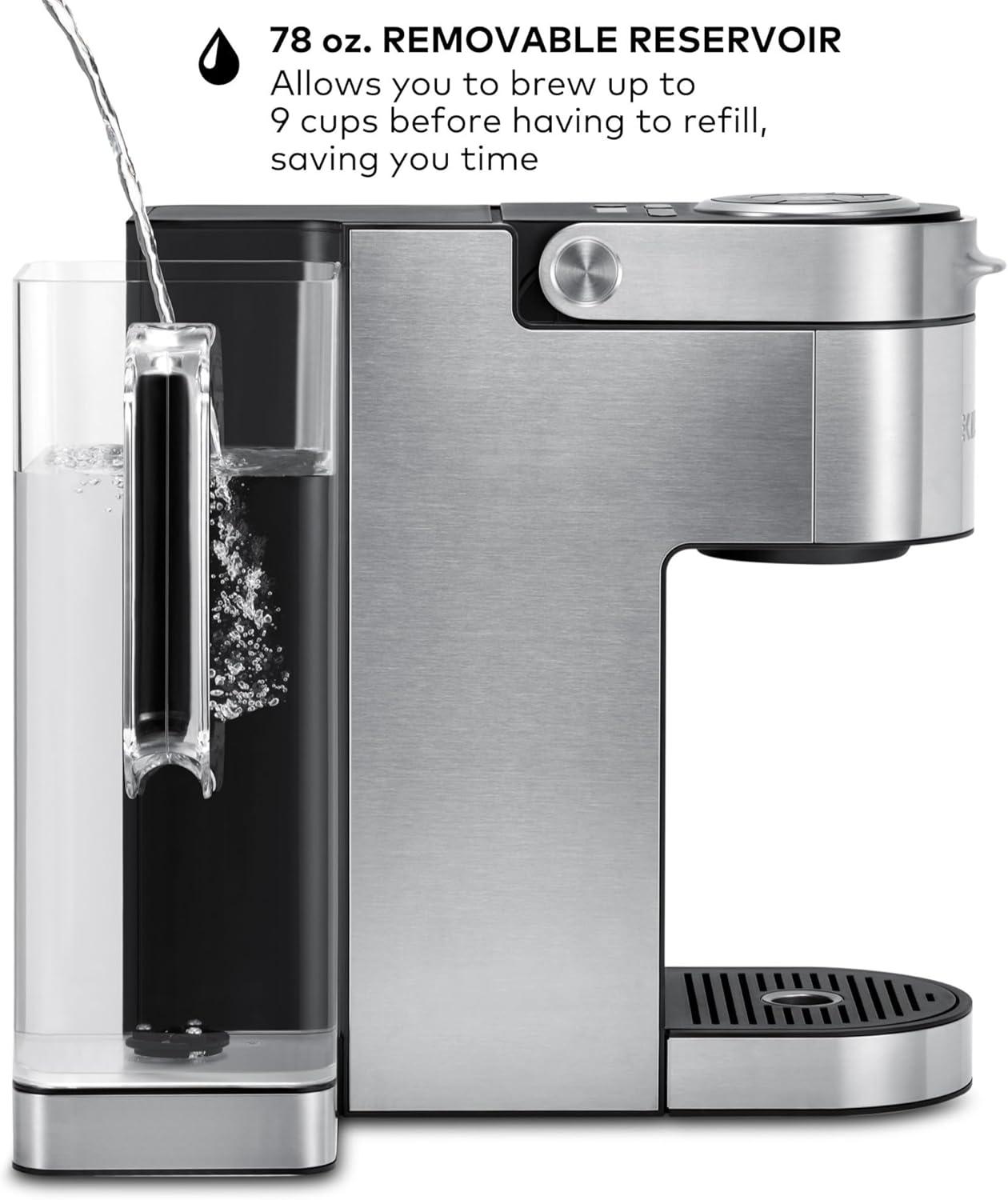 78 oz. REMOVABLE RESERVOIR: Allows you to brew up to 9 cups before having to refill, saving you time.