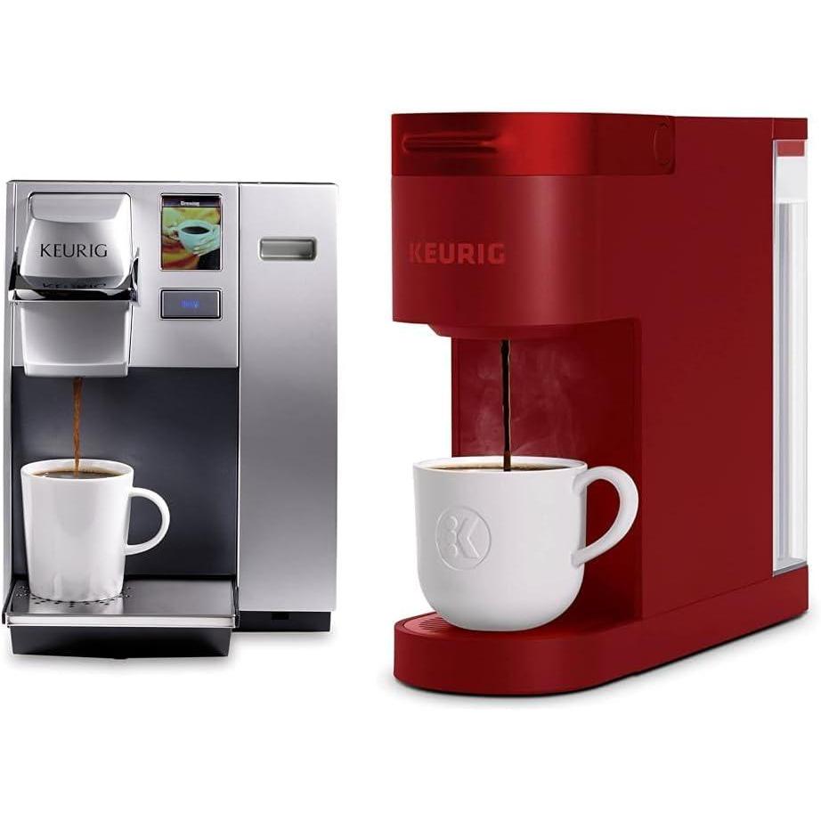 Keurig K155 Office Pro Single Cup Commercial K-Cup Pod Coffee Maker, Silver(coffee maker + Coffee Maker Scarlet Red)