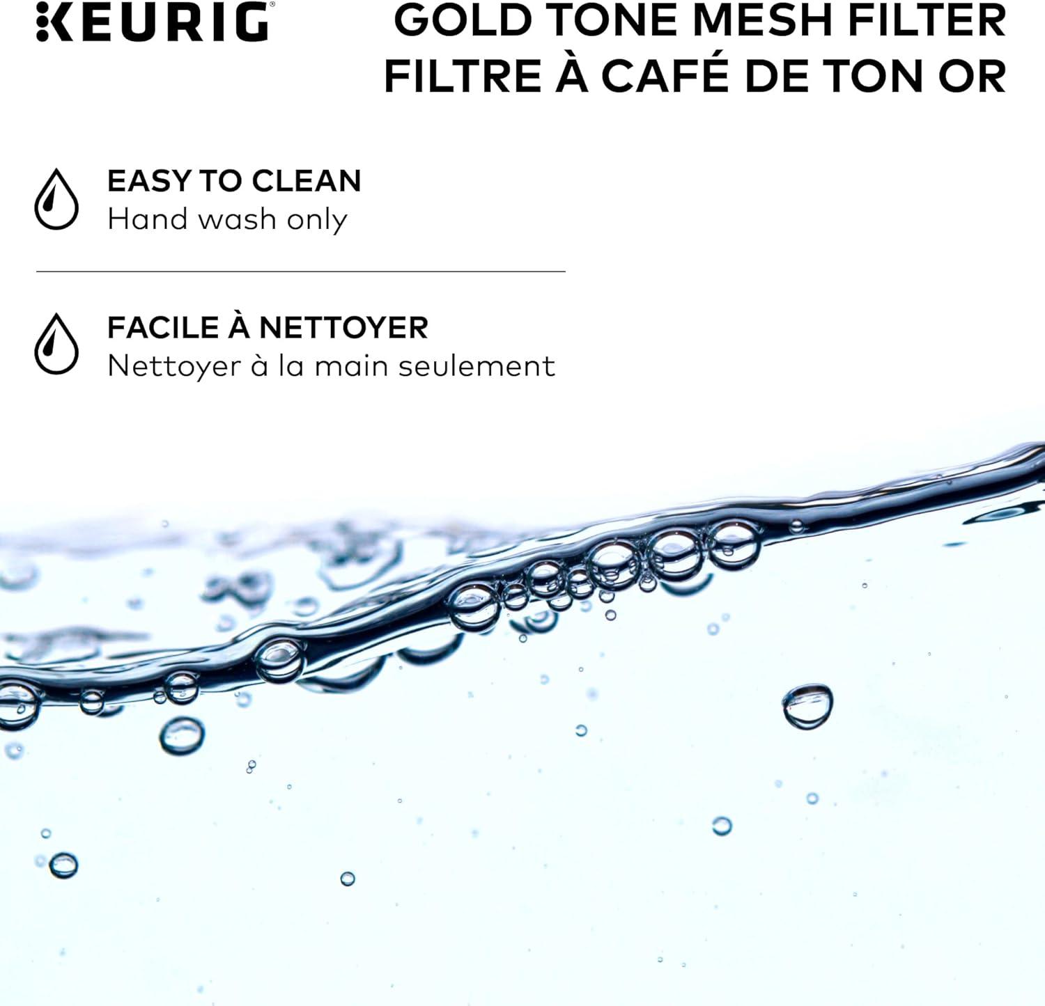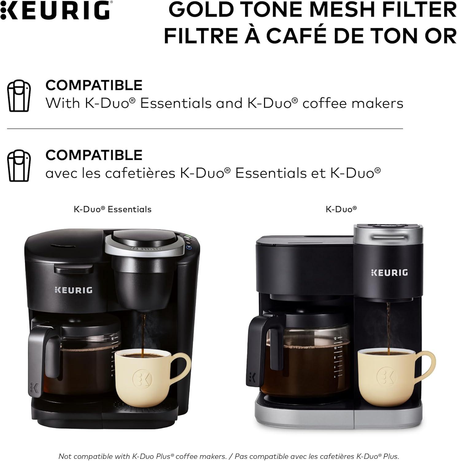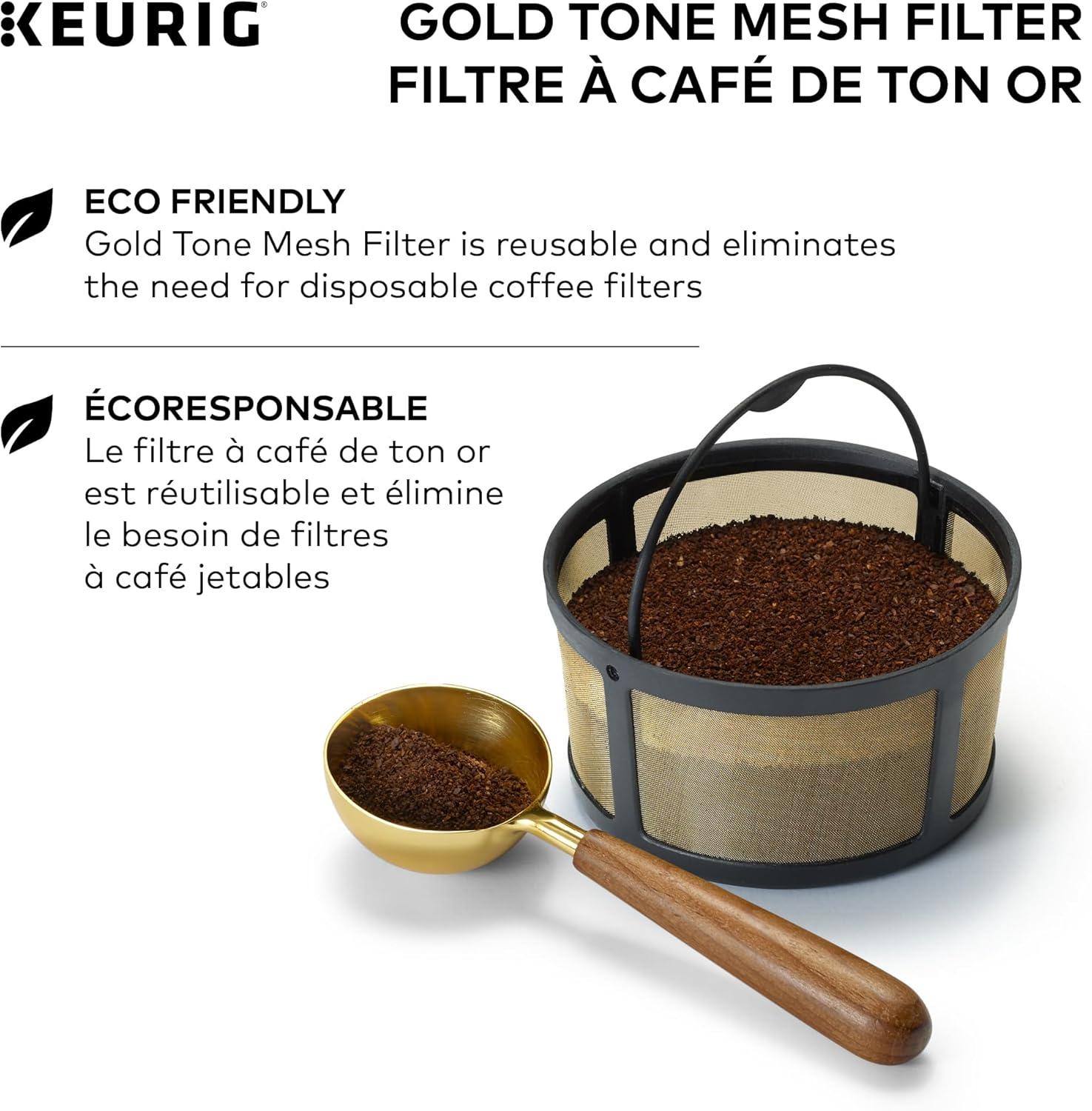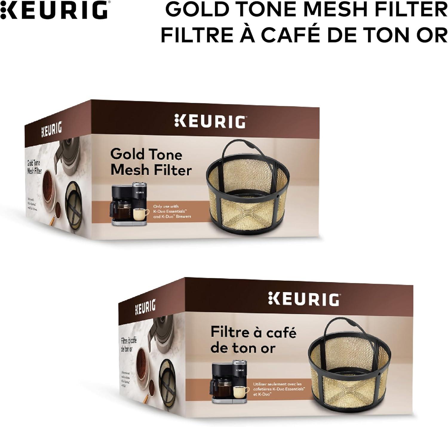 Enjoy the fresh-brewed coffee you love and eliminate the need for disposable Coffee filters with the Keurig Gold tone mesh filter. Designed for use with the k-duo and k-duo essentials single serve & carafe Coffee makers, The reusable Gold tone mesh filter is the easy and way to brew a carafe of delicious ground Coffee. Designed with ease in mind, the attached handle makes the Gold tone mesh filter easy to fill and clean (hand wash only), so it’s perfect for hosting gatherings of any size, treating friends and family to all their freshly brewed favorites, or enjoying a pot on your own. Simply add the desired amount of ground coffee to the filter basket (we recommend 1 tablespoon per cup) and brew.