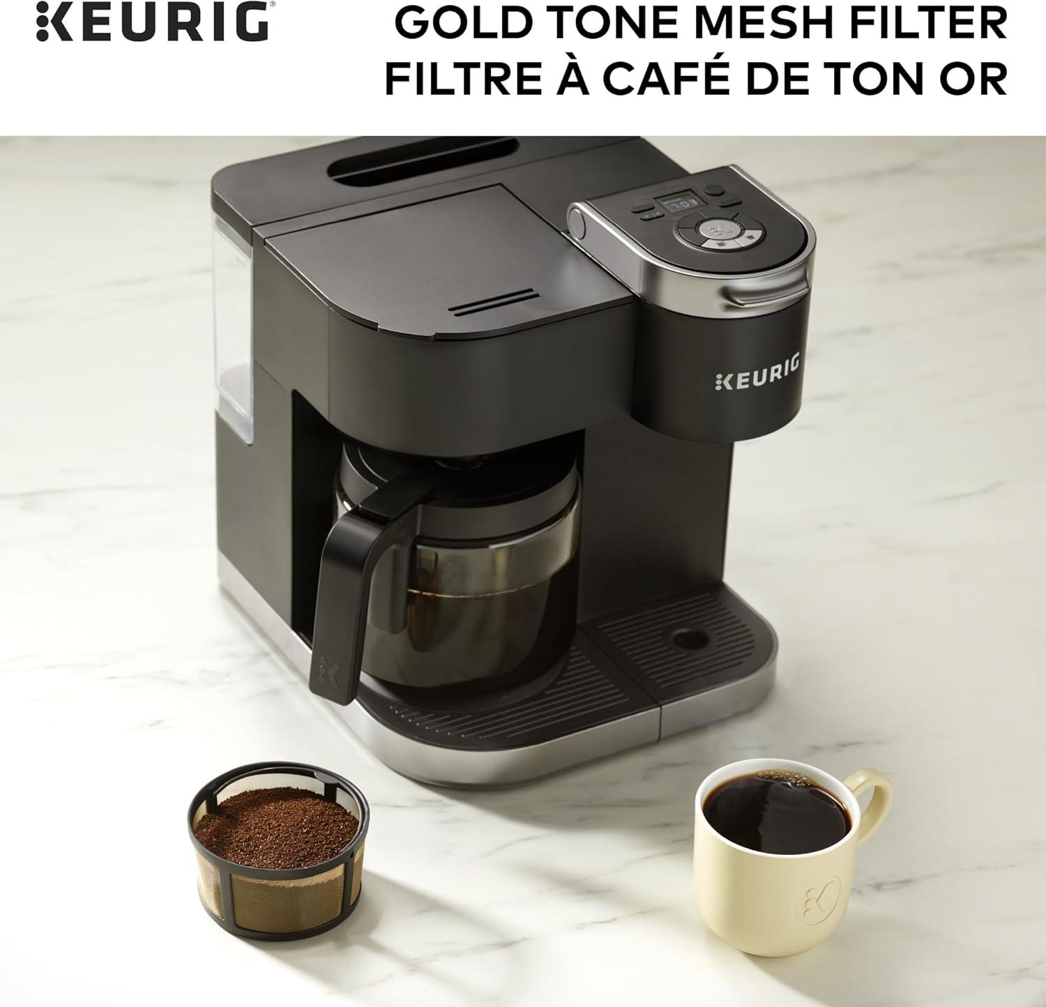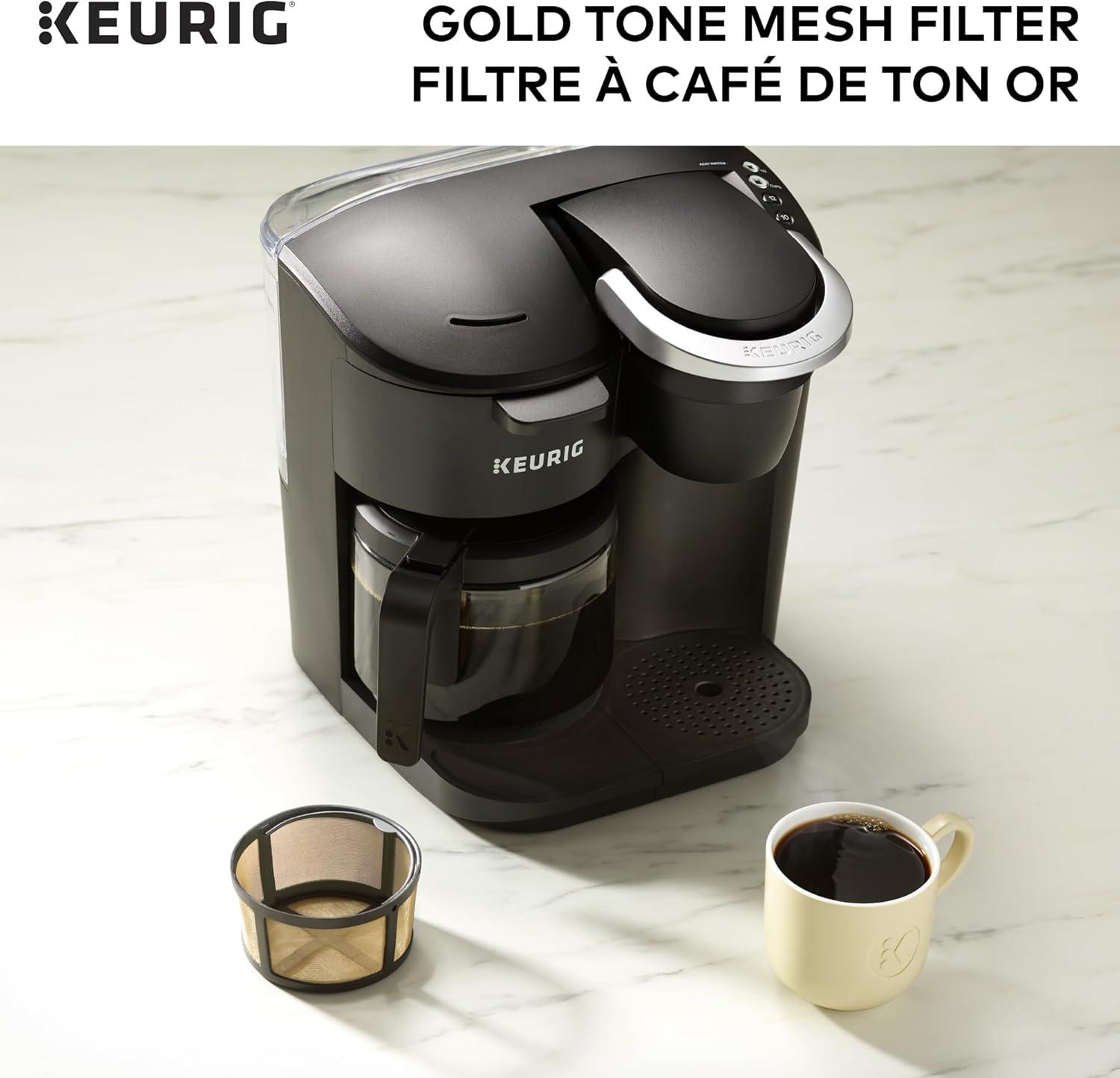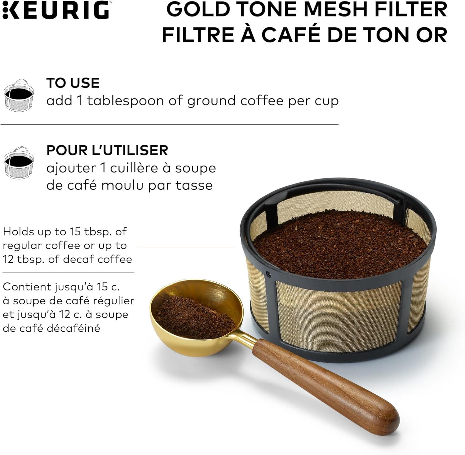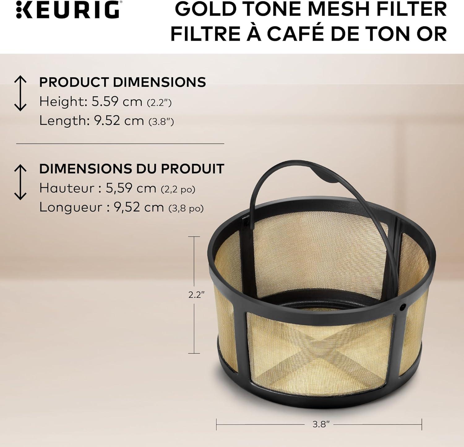 Enjoy the fresh-brewed coffee you love and eliminate the need for disposable Coffee filters with the Keurig Gold tone mesh filter. Designed for use with the k-duo and k-duo essentials single serve & carafe Coffee makers, The reusable Gold tone mesh filter is the easy and way to brew a carafe of delicious ground Coffee. Designed with ease in mind, the attached handle makes the Gold tone mesh filter easy to fill and clean (hand wash only), so it’s perfect for hosting gatherings of any size, treating friends and family to all their freshly brewed favorites, or enjoying a pot on your own. Simply add the desired amount of ground coffee to the filter basket (we recommend 1 tablespoon per cup) and brew.