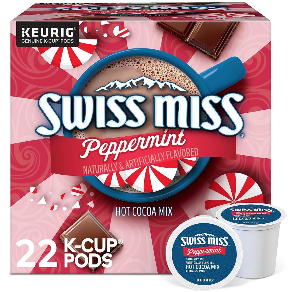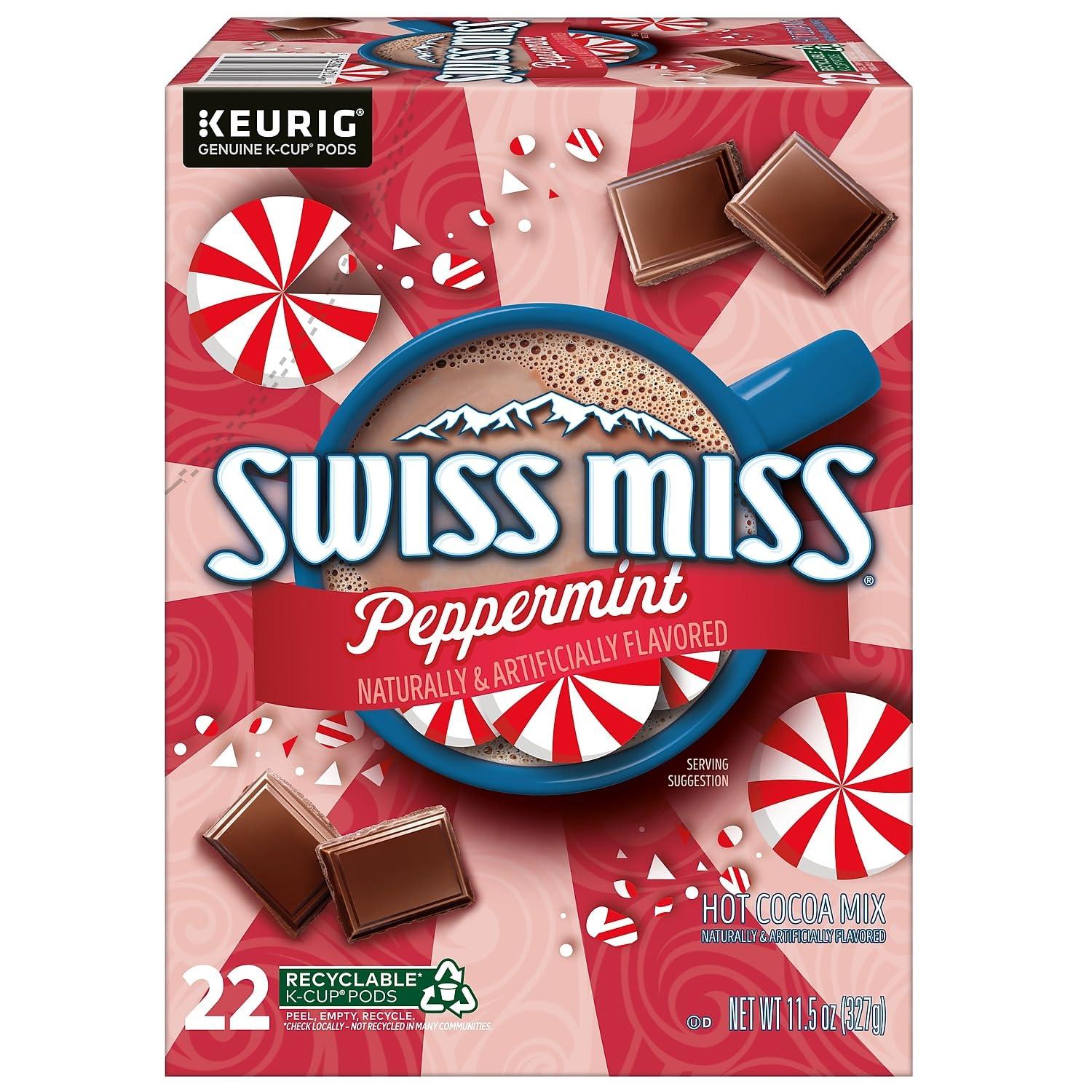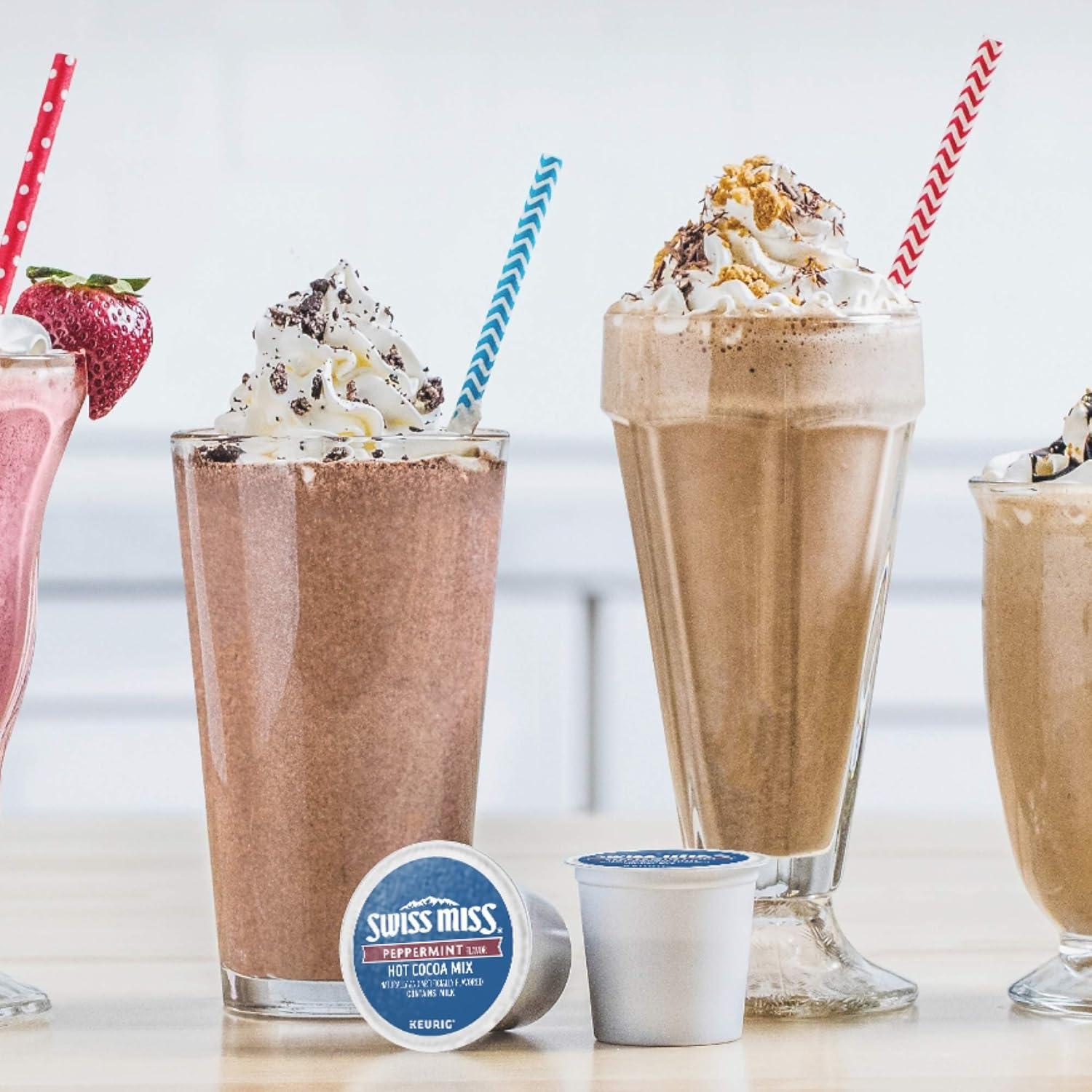 INCLUDES: 2 Swiss Miss Milk Chocolate Cocoa K-cup pods, 1 Swiss Miss Peppermint Cocoa K-cup pods, and 1 Swiss Miss Reduced Calorie Cocoa K-cup pods