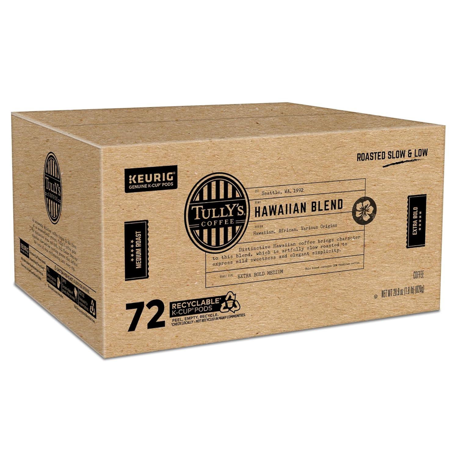 Traditionally inspired. Uniquely crafted. Powerful and intense, without the caffeine. This full-bodied Tully's Coffee French Roast Decaf is expertly slow roasted to elicit the rich flavors of bittersweet chocolate and anise, with light notes of plum jam. Made with 100 percent Arabica coffee. An uncommonly delicious coffee forged in the fires of an unconventional process, Tully’s Coffee gets its distinctive aroma and rich, full flavor from our signature low-and-slow roasting process that imbues that taste of true craftsmanship into every sip. Single-serve Tully’s Coffee K-Cup pods are compatible with all Keurig K-Cup pod single-serve coffee makers. Certified Orthodox Union Kosher. Packaging may vary.